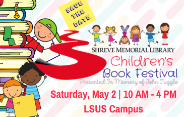Local authors and illustrators are encouraged and invited to participate in the festival by reserving a 10’x10’ booth space to share their works as well. Booth spaces are available for $25 each and include listing in the Children’s Book Festival Guide, table and chairs. Those interested in being a part of the festival are asked to contact Emily Horan at (318) 226-4980 or via email at ehoran@shreve-lib.org.